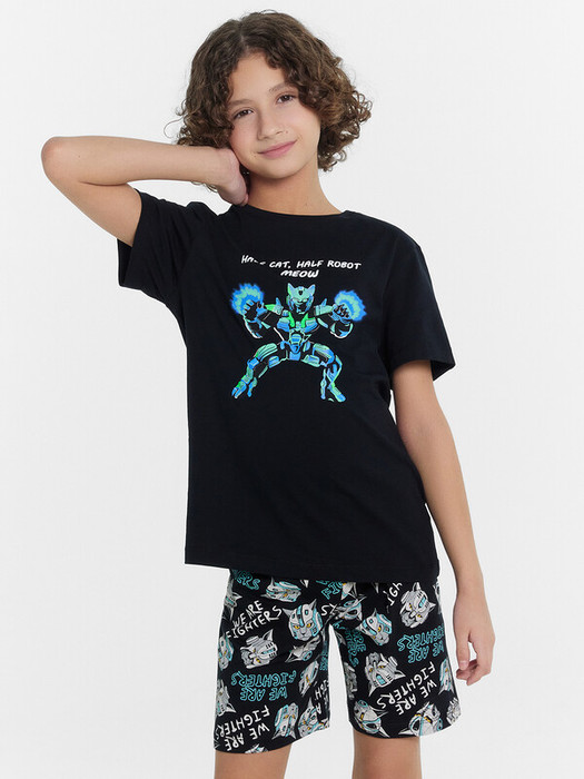 Пижама для мальчиков - это отличный комплект для сна и отдыха. Футболка имеет круглую горловину и короткие рукава, обеспечивающие комфорт и свободу движений. Шорты длиной до колен оснащены эластичной тесьмой в поясе для надежной посадки. Модель выполнена из хлопковой кулирки - натурального материала, который обладает отличной воздухопроницаемостью и мягкостью. Благодаря этим свойствам, такая пижама идеально подходит для сна и отдыха, создавая уют и комфорт в любое время года.