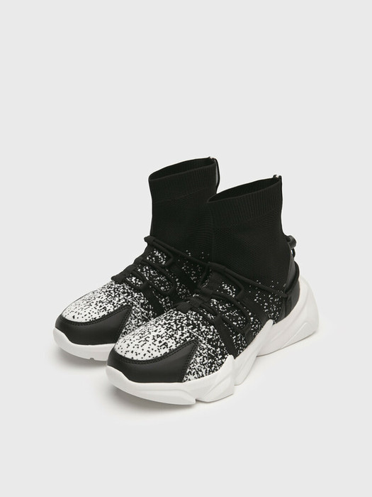 Высокие кроссовки-socks (сокс) для мальчика подростка. Верх - вязаный стрейчевый носок. Носочная и пяточная часть имеет дополнительное усиление. Модель имеет дополнительную фиксацию на стопе с помощью эластичного шнурка с утяжкой. Профилированная стелька из свиной кожи с анатомической формой подсводника обеспечивает правильную нагрузку на стопу. Подошва из ЭВА легкая и гибкая. Колодка очень удобная.