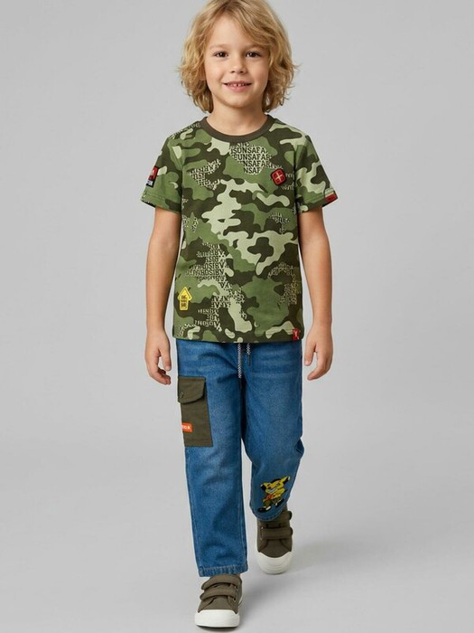 Детские джинсы для мальчика. Пояс на резинке дополнен удобным шнуром для регулировки. Классическая посадка, прямой крой. Джинсы имеют два передних и два задних кармана, а также накладной карман сбоку. Благодаря мягкой ткани и продуманному крою, модель удобна и подходит для повседневной носки.
