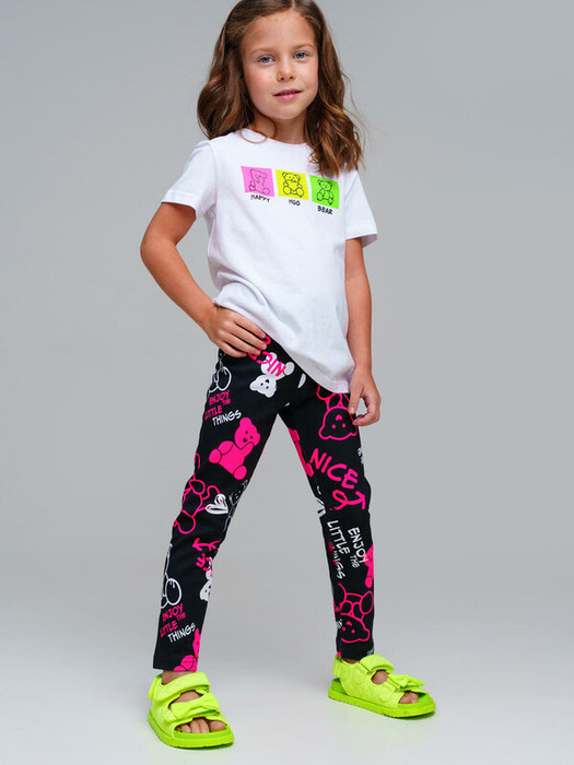 Леггинсы детские для девочки. Леггинсы из качественного и приятного на ощупь трикотажа. Высокое содержание хлопка 95%. Благодаря наличию эластана в составе ткани изделие держит форму и меньше мнется. По поясу резинка. Модель выполнена из качественного и приятного на ощупь трикотажа.