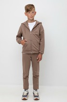 Брюки-джоггеры детские для мальчика. Выполнены из хлопкового трикотажа футер без начеса. Модель прямого кроя со средней посадкой на талии. Пояс выполнен на резинке, дополнительно регулируется шнурком. По бокам — удобные карманы. В нижней части брючин предусмотрены эластичные трикотажные манжеты для лучшей фиксации. Брюки украшены нашивками.