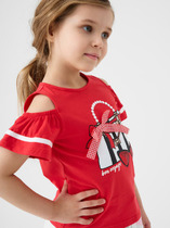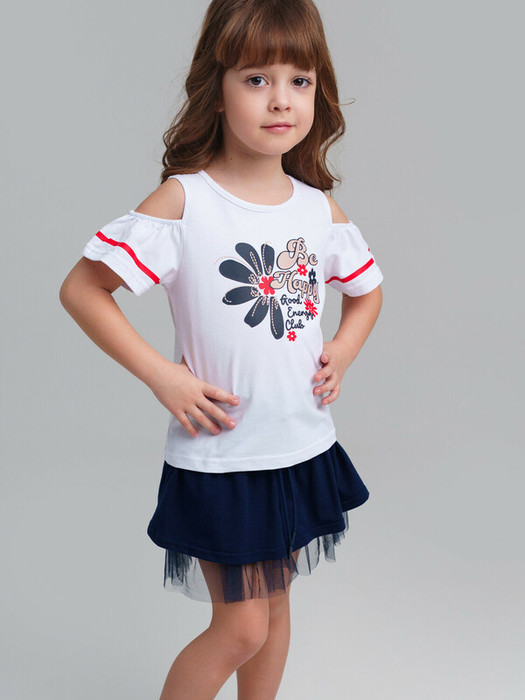 Футболка детская для девочки. Футболка из качественного и приятного на ощупь трикотажа джерси с высоким содержанием хлопка 95%. Благодаря наличию эластана в составе ткани изделие проще в уходе и держит форму. Модель выполнена из качественного и приятного на ощупь трикотажа.