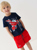 Детский костюм для девочки. Состоит из футболки с коротким рукавом и шорт. Выполнен из хлопкового трикотажа. Футболка прямого кроя, с рукавами-крылышками и красочным принтом. Шорты свободные, хорошо сидят на талии благодаря эластичному поясу и регулирующему шнурку.