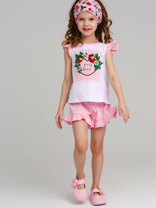 30.03 PlayToday Комплект трикотажный для девочек: фуфайка (футболка), шорты 124