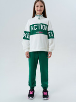 Спортивный костюм для девочки подростка. Комплект выполнен из хлопкового футера и состоит из свитшота и широких брюк на резинке. Толстовка оверсайз с красочным принтом и нашивкой. Рукава-фонарики. Манжеты выполнены из эластичного риба. Широкие брюки — комфортные, с эластичным поясом и шнуром для регулировки посадки. Удобные боковые карманы. Декоративные лампасы.