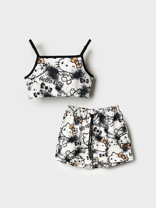 Комплект для девочки подростка. Включает топ и шорты, выполненные из мягкого хлопкового трикотажа. Топ с тонкими бретелями. Шорты имеют эластичный пояс с завязками для удобной регулировки посадки. Красочные принты с любимым мультяшным персонажем Хеллоу Китти.