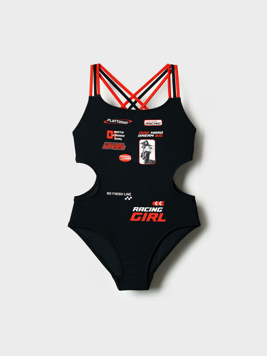 Слитный купальник для девочки подростка. Выполнен из черной эластичной ткани с эффектным дизайном и контрастными красными и черными бретелями, перекрещивающимися на спине. Боковые вырезы, создают дерзкий и модный образ. Купальник полностью на подкладке, с мягкими эластичными швами и усилением силиконовой лентой для лучшего прилегания и комфорта. Со 146 размера предусмотрены мягкие съемные чашки. Благодаря UF-защите, ткань сохраняет первоначальный вид даже при длительном пребывании на солнце. Подходит для плавания и активного отдыха.