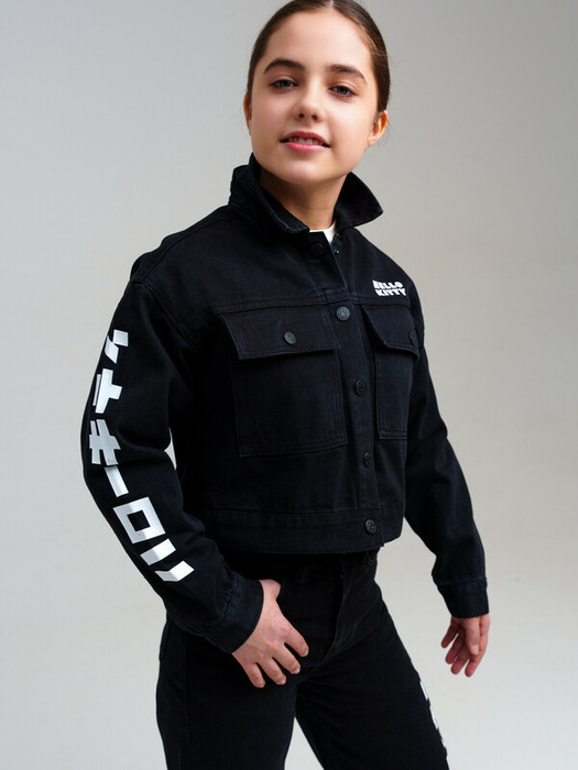 Джинсовка для девочки подростка. Куртка джинсовая из эластичного денима. Высокое содержание хлопка. Функциональные нагрудные карманы. Средняя длина. Застежка на кнопки.