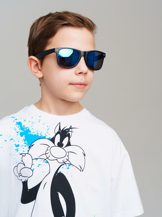 Солнцезащитные очки с фильтром Cat3 для мальчика подростка. Ширина оправы - 147 мм, длина дужки - 140 мм. Обхват головы 54-56 см. С защитой UV400, которая может поглощать или отражать 90% ультрафиолетовых лучей с длиной волны менее 400 нанометров, эффективно блокируя все ультрафиолетовые лучи солнечного света. Синие зеркальные линзы выглядят блестящими и идеально подходят для ношения на пляже или в путешествии.  Очки транспортируются в картонной коробке. В комплект входит фирменный текстильный чехол из микрофибры, с помощью которого легко ухаживать за изделием.