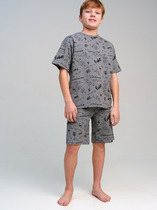 Детская пижама для девочки. Состоит из футболки, прямого кроя с короткими рукавами и бридж. Модель выполнена из мягкого, хлопкового трикотажа. Яркий принт с цветами, бабочками и надписями делает комплект весёлым и привлекательным. Рукава украшены воланами, что придаёт образу воздушность. У футболки круглая горловина с аккуратной отделкой, бриджи — на удобной резинке и с декоративным шнурком на поясе.