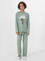 Пижама: футболка, брюки из качественного и приятного на ощупь трикотажа джерси. 100% хлопок. Футболка oversize. Брюки comfort fit с эластичным поясом со шнурком. Карманы в боковых швах.