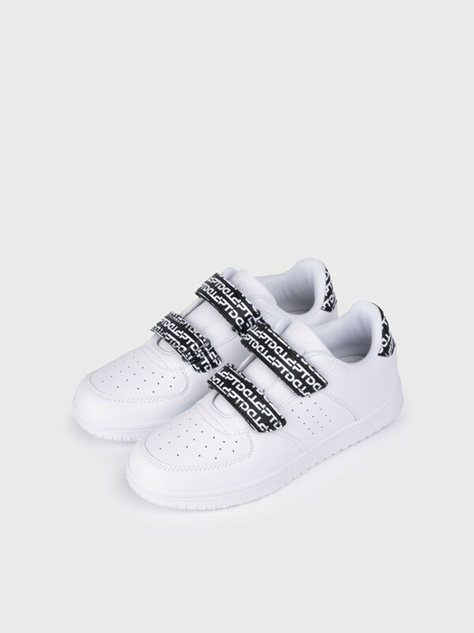Трендовые белые кеды для девочки подростка. Кроссовки  выполнены из искусственной кожи, обладающей высокими эксплуатационными свойствами. На липучках и заднике используется монограммный фирменный принт. В носочной части обуви стоит текстильная подкладка c высоким содержанием хлопка 80%, которая обладает высокой гигроскопичностью. В пяточной части обуви текстильная подкладка обладает хорошей износостойкостью.  Две липучка создают удобство при обувании. Профилированная съемная стелька из свиной кожи с анатомической формой подсводника обеспечивает правильную нагрузку на стопу.  Формоустойчивый задник поддерживает стопу в правильном положении. Эргономичная форма колодки обеспечивает правильное формирование стопы ребенка. Подошва из ТПР гибкая, не скользит и устойчива к истиранию.