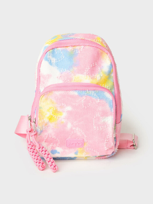 Оригинальная сумка кросс-боди для девочки-подроста. Молодежный однолямочный рюкзак выполнен из вареный джинсы градиентного окрашивания с эффектом рваности. Нагрудная сумка имеет одно основное отделение на молнии и карман на молнии спереди.  Внутри имеется карман. Регулируемый ремень. Параметры сумки: высота - 24 см, ширина - 17 см, глубина - 6 см