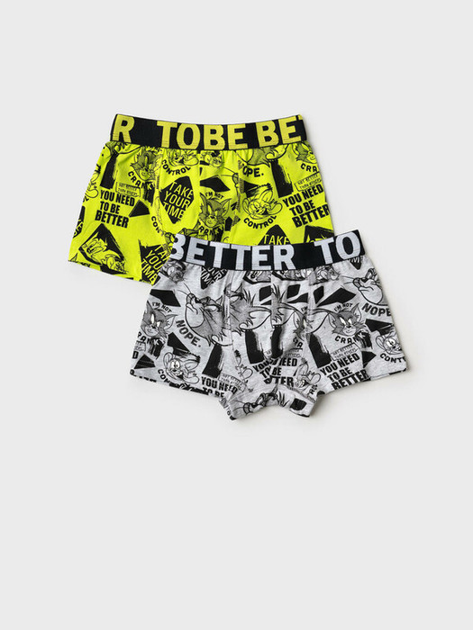 Набор из двух детских трусов-боксеров для мальчика. Изделие плотно прилегает к телу, не имеет боковых швов, что делает его особенно комфортным. Эластичный пояс с логотипом бренда обеспечивает надёжную посадку. Принт с любимыми героями Том и Джерри. Материал — мягкий хлопковый трикотаж, приятный к телу.