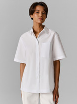 Блуза свободного силуэта с разрезами в боковых швах из креповой блузочной ткани. Лиф с застёжкой на пуговицы. Вырез горловины обработан отложным воротником на стойке. На задней части изделия выполнена кокетка с небольшой складкой. Линия проймы окантована косой бейкой из основной ткани. Жемчужные пуговицы на застёжке придают изделию нарядный вид.