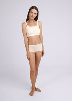 Топ из легкой атласной блузочной ткани. Свободный силуэт, с небольшими разрезами в боковых швах. Круглый вырез горловины и линия проймы окантованы косыми бейками из основной ткани.