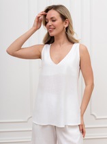 14.04 Vilatte Свободный топ с V-вырезом и цельнокроеным коротким рукавом изо льн