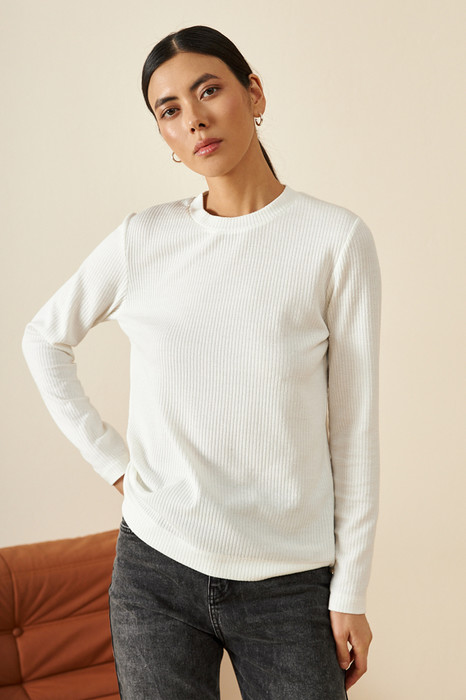 Джемпер свободного силуэта из фактурного эластичного полотна. Втачной длинный рукав. Круглый вырез горловины оформлен бейкой. Женский джемпер стал незаменимой и популярной разновидностью одежды, которая может применяться буквально во всех случаях жизни.