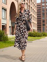 09.04 Vilatte Платье из вискозы твил D22.224 бежевый-коричневый