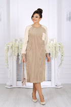 Брюки прямого силуэта из костюмной ткани. Пояс притачной с эластичной резиной. На передней части брюк застрочены стрелки.