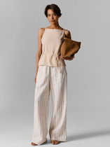 Брюки прямого силуэта из костюмной ткани. Пояс притачной с эластичной резиной.
