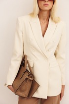 Жакет-бомбер из эластичного полотна, с покрытием, имитирующим кожу. Свободный силуэт с застёжкой-молнией и накладными карманами. Рукав втачной в спущенную пройму. Нижняя часть рукава и низ изделия присборены на резинку. Линия горловины оформлена воротником-стойкой.