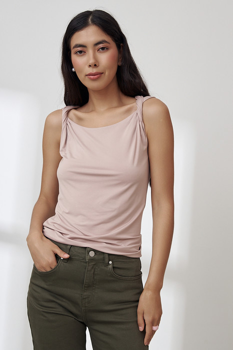 Джемпер полуприлегающего силуэта из вискозного эластичного полотна. Оригинальный крой с перекрутом на плечах. Изделие двухслойное с круглым вырезом горловины.