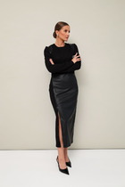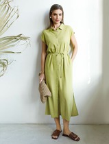 Платье из вискозной ткани с крэш-эффектом полуприлегающее в области груди и свободное в области бедер. Изделие отрезное по линии талии. Лиф с застёжкой на пуговицы. Вырез горловины обработан отложным воротником на стойке. Втачной короткий рукав. В комплекте пояс из основной ткани.