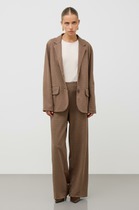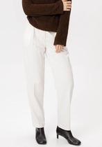 Брюки прямого силуэта из костюмной ткани. Пояс притачной с эластичной резиной.