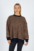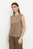 Джемпер свободного силуэта со спущенной линией плеча и рукавом до локтя выполнен из эластичного полотна. Вырез горловины оформлен бейкой из основной ткани. В таблице размеров представлены параметры человека, а не изделия.