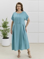 Платье из эластичного полотна свободного силуэта. Изделие со спущенной линией плеча и длинным рукавом. Вырез горловины оформлен бейкой из основной ткани. В таблице размеров представлены параметры человека, а не изделия.