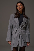 Жакет из костюмной ткани свободного силуэта. По линии талии изделие затягивается на кулиску. Цельнокроеная стойка, переходящая в борт, визуально делает фигуру стройнее. Втачной длинный рукав в спущенную пройму.