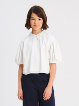 Школьная блузка для девочки. Актуального дизайна из качественного материала для девочки. Кокетка и рукава выполнены из мягкого гипюра.Прекрасный вариант для школьных будней, так и для торжественных случаев. Производство:Радуга-дети Материал: Вискозное полотно, гипюр. Состав: 93% вискоза,7% эластан., гипюр-100% п/э.