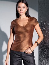 Футболка облегающая из хлопка в рубчик с V вырезом и матовым покрытием металлик