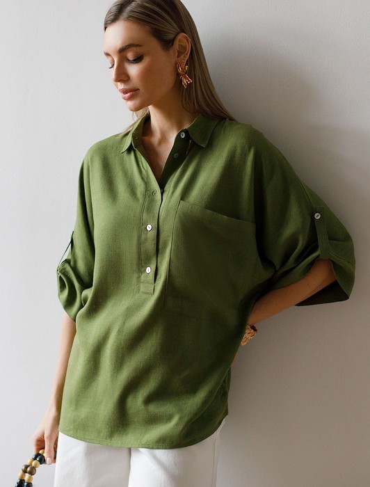Состав: 70%Вис 30%ЛенБлузка выполнена изо льна с вискозой. Модель с цельнокроеным рукавом с застежкой на пату дополнена сольным карманом и застежкой на пуговицы из натурального перламутра. Сочетается в костюме с брюками D24.222 и шортами D28.052. Ткань изящно струится, почти не мнется и сохраняет форму в течении долгого времени, обладает высокой воздухопроницаемостью, обеспечивая комфорт даже в самое жаркое время года.