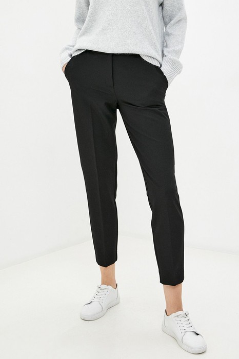 Состав: 75%ПЭ 24%Вис 1%ПУКлассические чёрные брюки со стрелкой. Для удобства, пояс на талии сзади выполнен на резинке.