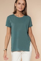 Состав: 92%Хлопок 8%ПУФутболка дизайнерского асимметричного кроя - с декоративной формой одного бокового шва - укороченная внутренняя часть с одной стороны. Изогнутые края бокового разреза украшены металлическими клепками.