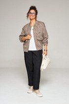 Пояс на 3х линиях узкой резинки и шнуре. Карманы с клапанами, зафиксированными золотистыми копками.