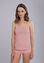 Базовая, малообъемная майка из трикотажного, эластичного полотна. V-образная горловина обработана кружевом. Широкая бретель. Производство Узбекистан.