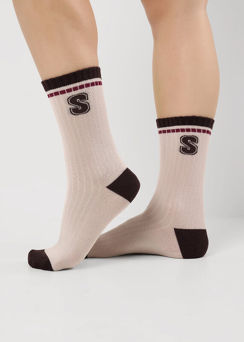 носки женские с выделенным цветом мыском и пяткой, с буквой S