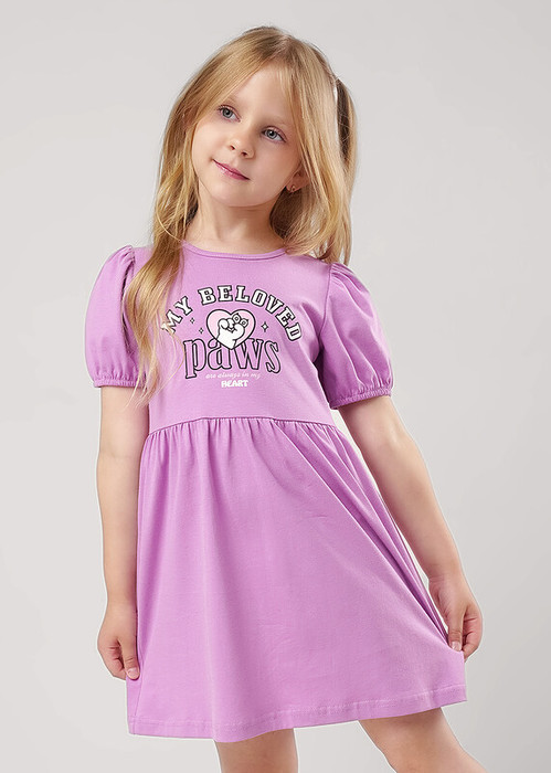 Милое романтичное платье из хлопкового трикотажа- то, что нужно для создания классного повседневного образа! Модель с пышной юбкой и объёмными рукавами- ""фонариками"" дополнена стильным ярким принтом!