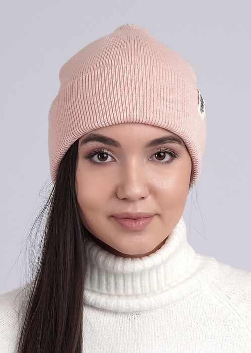Шапка двойная женская, декорирована стильной нашивкой логотип. У данной модели 2 варианта посадки- с отворотом и без отворота. Идеально для холодной осени- тёплой зимы.