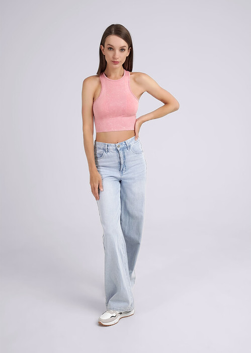 Женская майка-топ из микрофибры с эффектом ""Варки"". Майка плотного прилегания, по низу вывязана широкая резинка