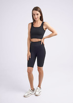 Майка топ укороченная из трикотажного полотна кашкорсе лапша с эластаном. Средняя ширина бретели. Округлый вырез горловины. По горловине, пройме окантовка. По низу изделия внутренняя резинка, по центру жаккардовая нашивка.