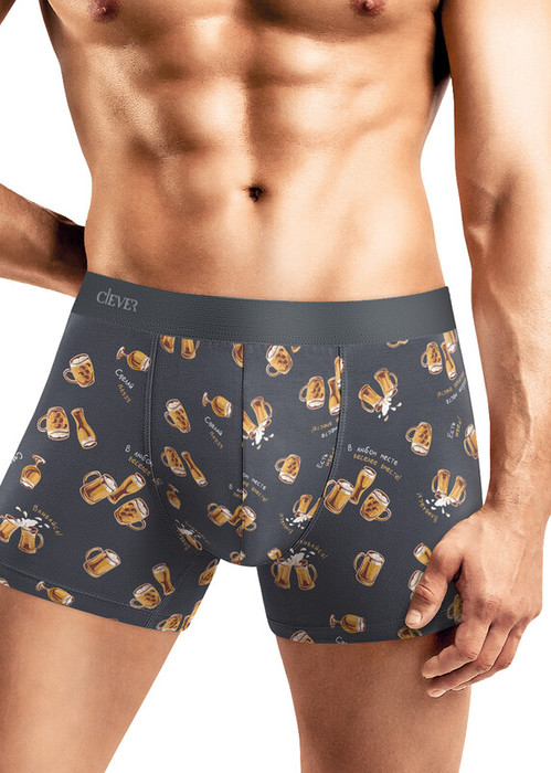 Шорты удлиненные комфортной посадки выполнены из оригинального полотна в фешн графику ""пивные кружки"". Трусы дополнены пришивной резинкой и имиджевым принтом.