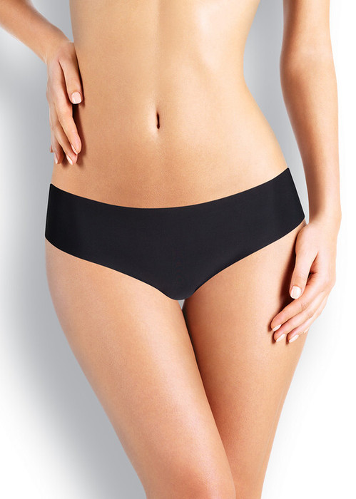 Трусы бикини, изготовлены из однотонного эластичного полиамидного полотна. Края изделия обработаны лазером, благодаря чему нити не распускаются. Модель не заметна под облегающей одеждой, прекрасно держит форму, но при этом отличается эластичностью.