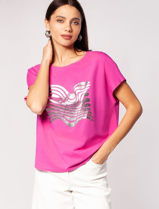 Состав: 92%Хлопок 8%ПУФутболка с цельнокроеным рукавом выполнена из премиального хлопка с принтом фольгой. Изделие украшено металлическим логотипом бренда. Самое высокое качество хлопковых волокон с добавлением эластана. Идеально держит форму и сохраняет внешний вид в течение долговременного использования.