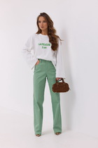 Лёгкие комфортные брюки из набивного трикотажа супрем. Модель с поясом на резинке и боковыми карманами. Низ изделия обработан плоскими швами. Гладкий материал приятен к телу, не теряет форму и позволяет коже дышать.