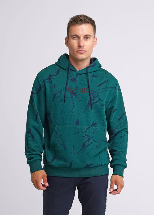 Молодежное худи из футера на капюшоне и регулируемым шнуром, с удобным спущенным рукавом и карманом ""кенгуру"". Модель интересна благодаря интересной набивке с контрастной авторской фурнитурой и принтом. Составит отличный комплект с брюками.