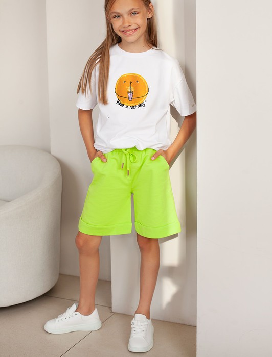 Состав: 100%ХлопокСвободные шорты с карманами, выполнены из премиального облегченного футера. Мягкое трикотажное полотно создаст приятное прилегание к телу. Модная форма подарит комфорт и сделает образ ребенка стильным. С футболкой F49.403 шорты составят отличный комплект, мотивирующий на движение!